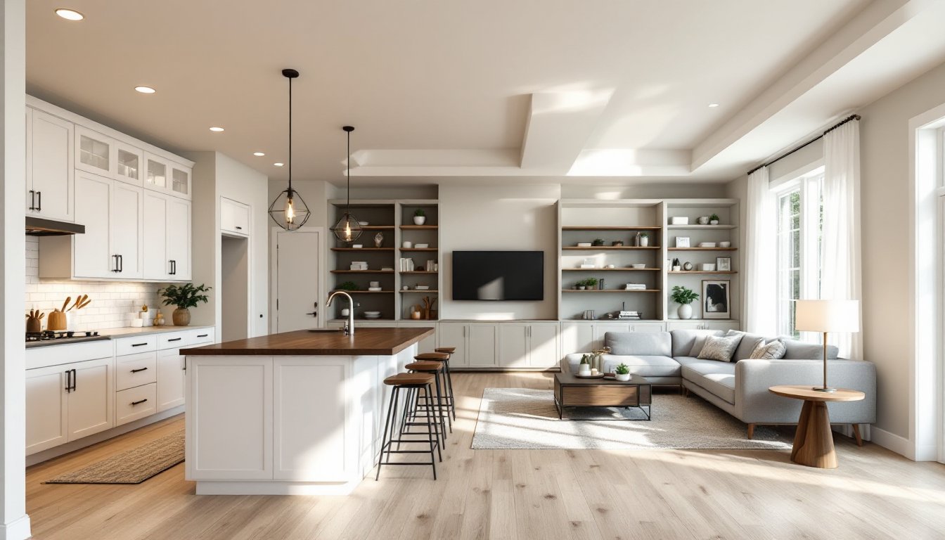Open-concept design removes barriers between kitchen and living areas, creating sight lines that make smaller homes feel larger and enable better supervision of children and entertaining. For families, the practical benefits are undeniable: you cook dinner while watching the living room, guests flow naturally between zones, and natural light from any window reaches deeper into the home.